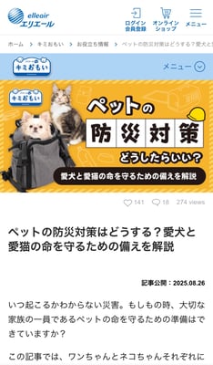 大王製紙さんからご依頼を受けていたWEBサイト掲載の「ペットの防災対策」記事の監修をさせていただきました✍️