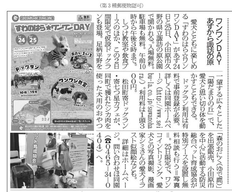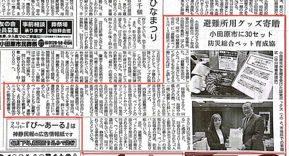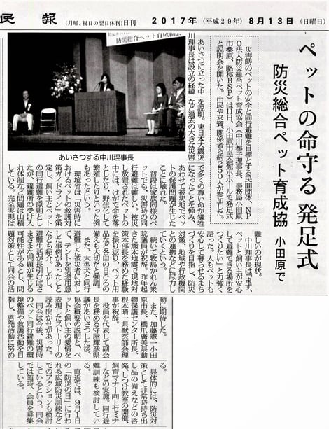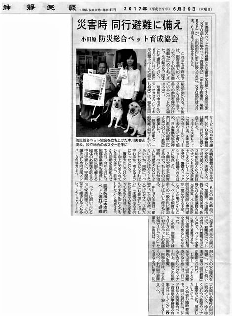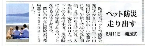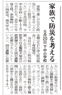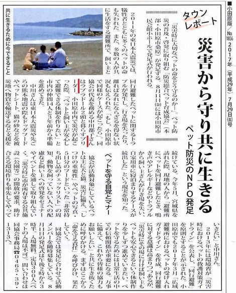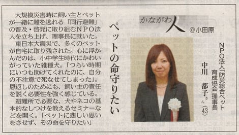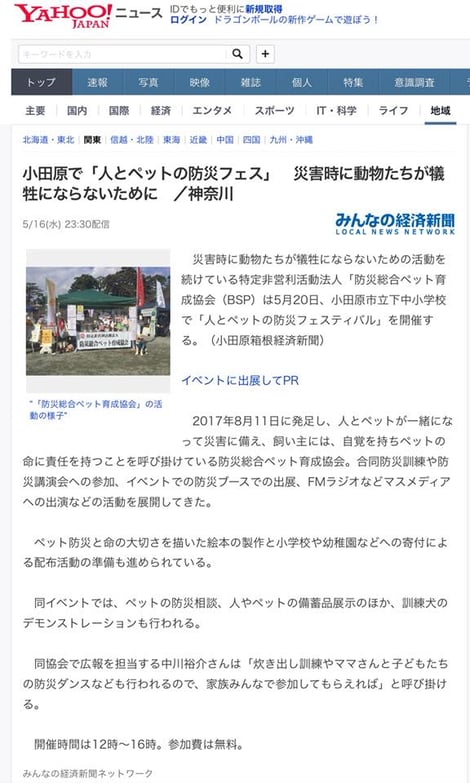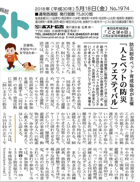 小田原箱根経済新聞に、5月20日の『人とペットの防災フェスティバル』の告知をして頂きました。