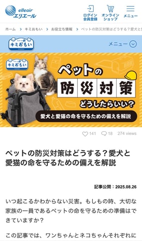 大王製紙さんからご依頼を受けていたWEBサイト掲載の「ペットの防災対策」記事の監修をさせていただきました✍️