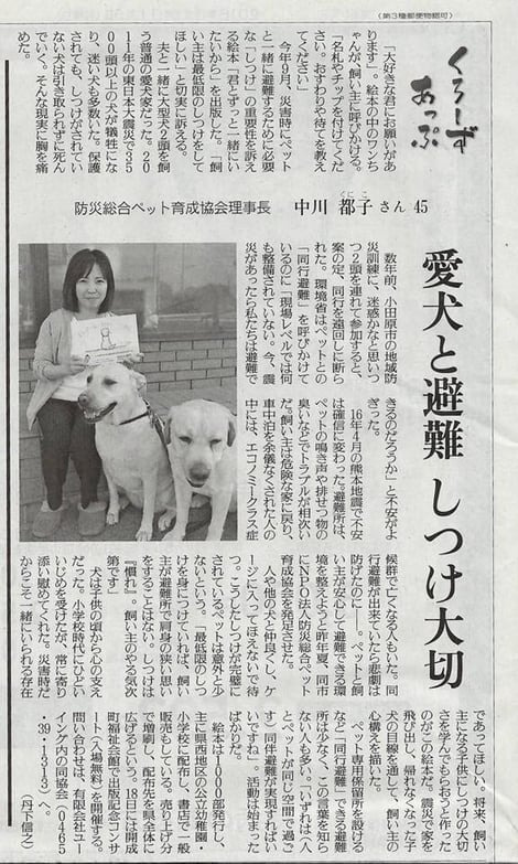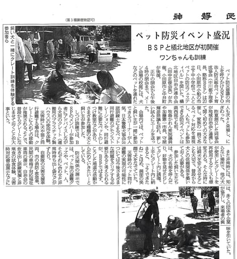 ドッグトレーナーで、当協会の相談役の小野さん達が開催したペット防災イペントの記事です。