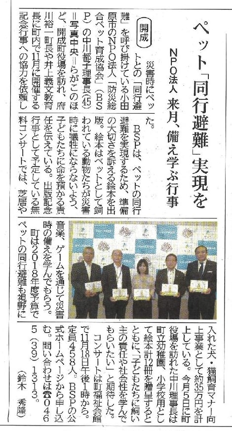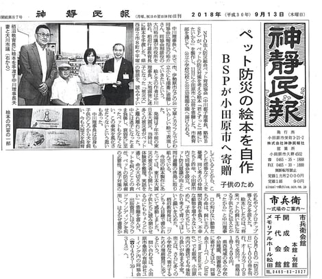 9月11日の、小田原市教育委員会への絵本贈呈式の記事です。
